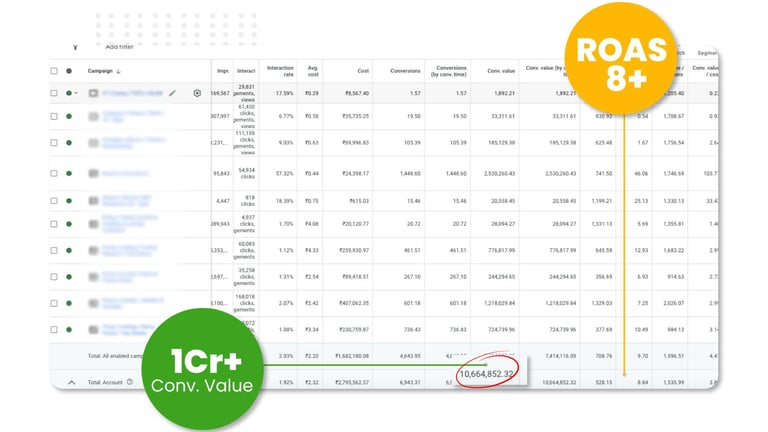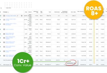 1Cr+ Revenue done in 4 Months at a avg ROAS of 8+